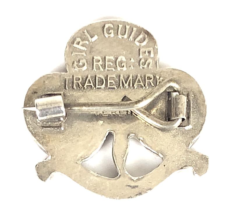 A scarce original circa 1968 to 1994 period 'Girl Guides commissioner promise badge', the reverse with embossed 'GIRL GUIDES REG TRADE MARK' and impressed 'STERLING' Very good condition, complete with original pin fittings.