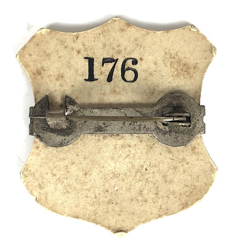A very scarce orginal antique '1923 Henley Royal Regatta Stewards Enclosure Visitor's Badge', large ornate card shield bearing printed details, the reverse numbered '176'. Good condition, complete with original metal pin fitting.