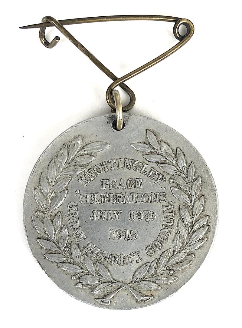 A scarce original circa 1919 First World War peace celebrations alloy medal for 'Knottingley Urban District Council' complete with original pin fittings. Good condition.