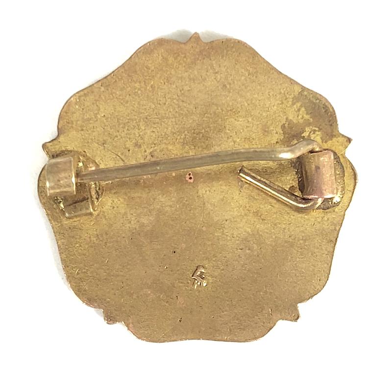 A scarce original 'Cyclists' Touring Club 1958 York Rally gilt and enamel pin badge', bearing the clubs winged wheel logo to the centre of a white enamel yorkshire rose. Very good condition, complete with original pin fitting, no damage to the enamel. gilt finish remains bright.