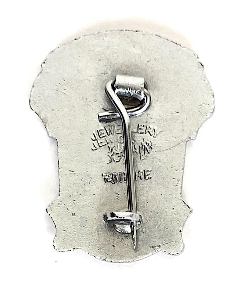 A very scarce original 'Butlin's 1956 Filey pin badge' chromium plated example with red background and white enamel labels, the reverse impressed with Irish maker's details 'Jewellery Co Dublin Empire'. Very good condition, complete with original pin fittings, no damage to the enamel.
