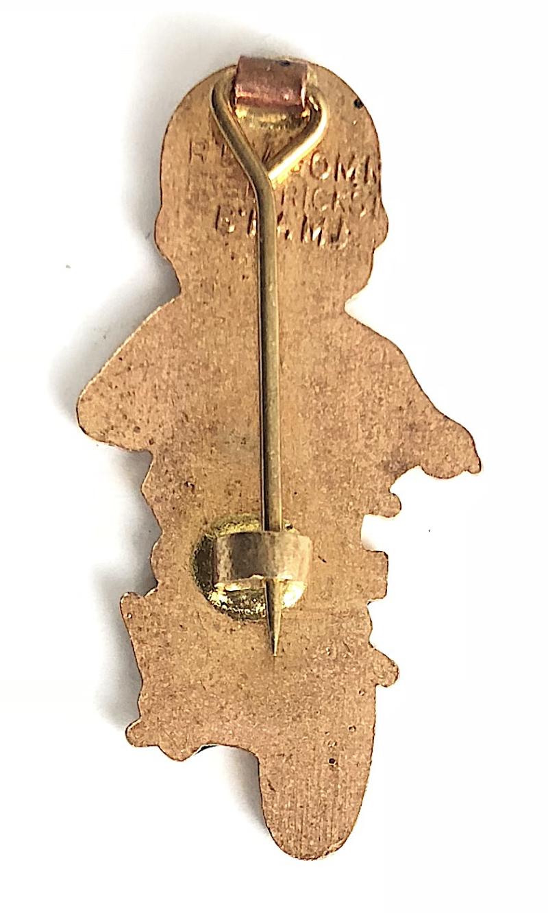 A good original circa 1970's vintage period 'Robertson's marmalades and Jam Golly motorcyclist promotional pin badge', the reverse impressed with maker's details 'R.E.V.Gomm Frederick St B'ham.1'. Very good condition, complete with original pin fittings, no stress marks or damage to the enamel, gilt finish remains bright.