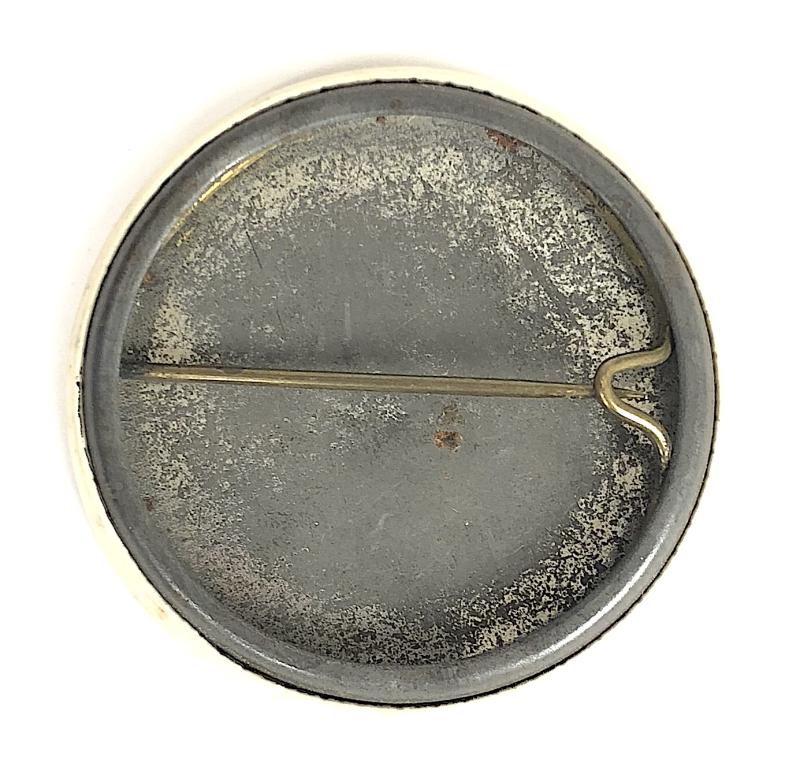 A rare original First World War period 'Women's Emergency Land Corps badge'; large white celluloid pin button, bearing black printed 'HERTS WAR AGRICULTURAL EXECUTIVE COMMITTEE title surround and inscribed 'WOMEN'S EMERGENCY LAND CORPS' to centre. Good condition, complete with original pin fitting, no cracks, minimal foxing.