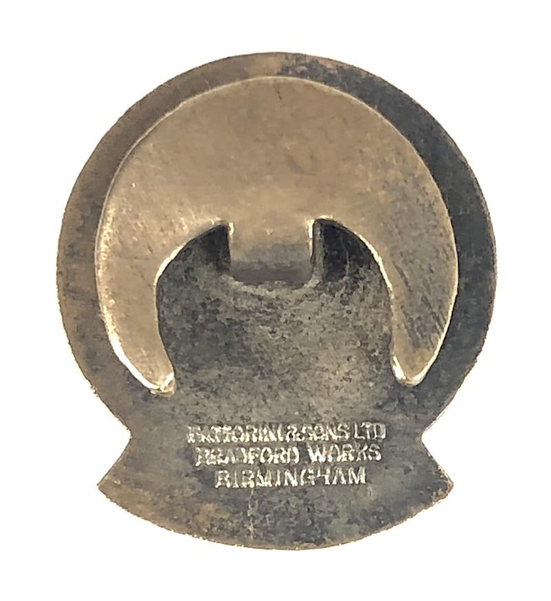 An exceptionally good original Second World War period 'ARP Chesterfield air raid precautions home front badge'; small silver plated disc inlaid with rich blue enamel and bearing red enamel local area title CHESTERFIELD below; the reverse impressed with maker's details Fattorini & Sons Ltd, Bradford Works Birmingham'. Very good condition, complete with original buttonhole lapel fitting, no stress marks or damage to the enamel, minimal wear to silver plating.