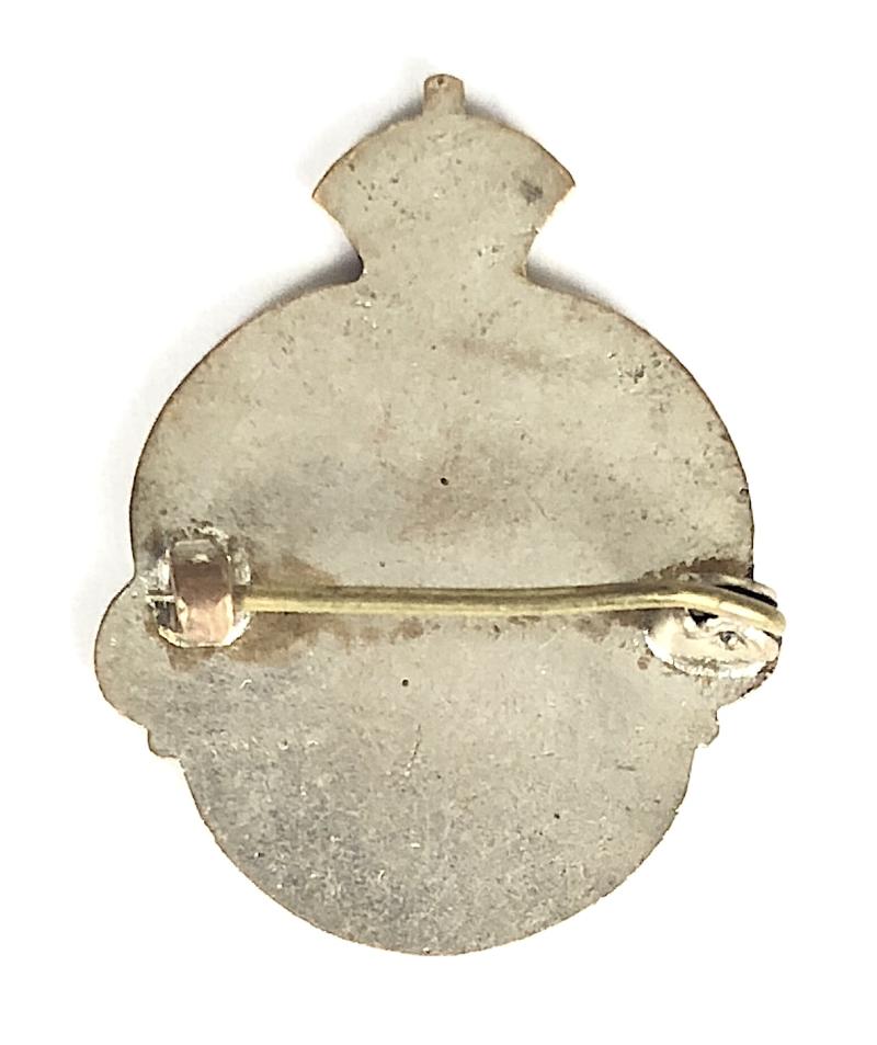 An unusual scarce original 1924 'British Empire Exhibition souvenir pin badge'; Crowned silver plated ornate red enamel title surround, the rayed centre bearing a shield from the Ciy of London Coat of Arms' inlaid with white enamel, bearing a red cross and 'Wat Tyler's dagger' in the first quarter and the 'Wembley Lion' resting on blue enamel scrolls 'Wembley 1924'. Very good condition, complete with original pin fittings, no damage to the enamel.