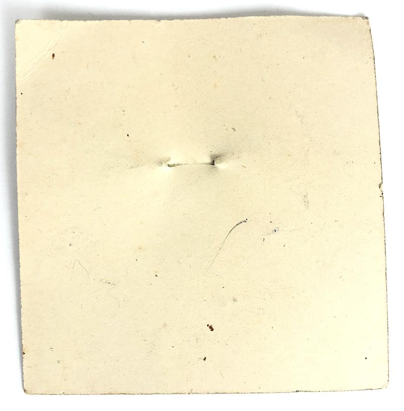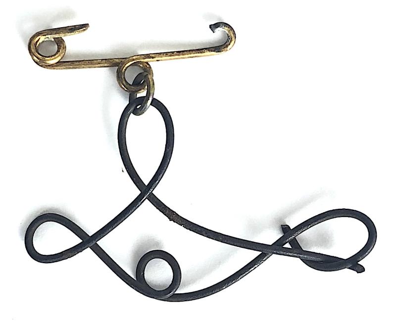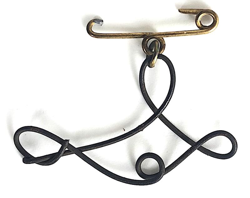 A rare ORIGINAL First World War period British Red Cross Society card backing, describing the relevant circumstances surrounding the piece of curled wire artefacts from the First Zeppelin brought down at Cuffley in Essex on Sept 3rd 1916 and given by H.M. War Office exclusively to the British Red Cross Society to make into a souvenir brooch to sell and raise funds for the much needed war effort. Pin present but broken. Card size approx 70 x 67mm.