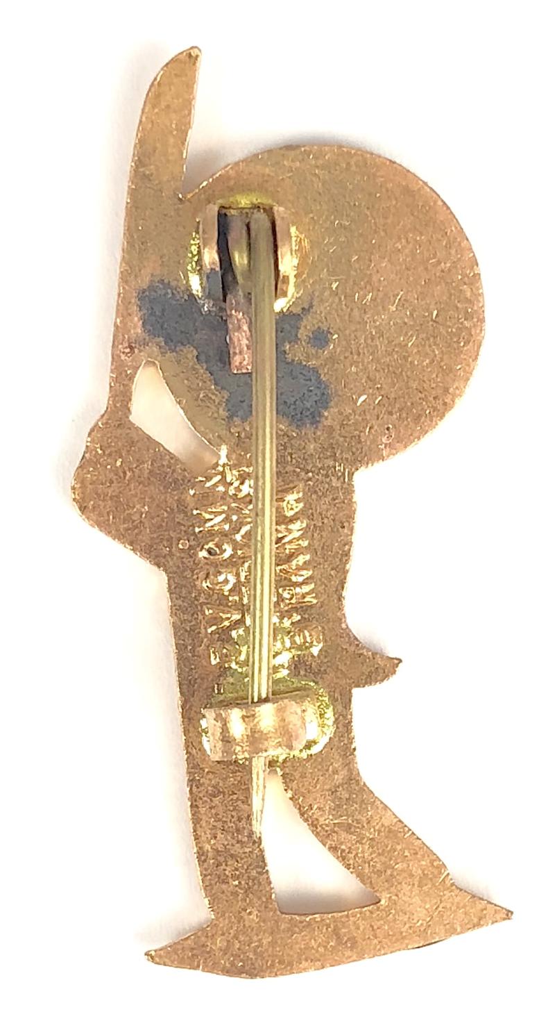A good original circa 1950's period 'Robertson's Marmalades and Jams Golly cricketer promotional badge', depicting blue hand, red feet, pop eyes and points on bar, with white waistcoat displaying the advertising slogan 'Golden Shred', the reverse impressed with maker's details 'R.E.V. Gomm Frederick St. B'Ham'. Very good condition, complete with original pin fittings, no stress marks or damage to the enamel, gilt finish remains bright.