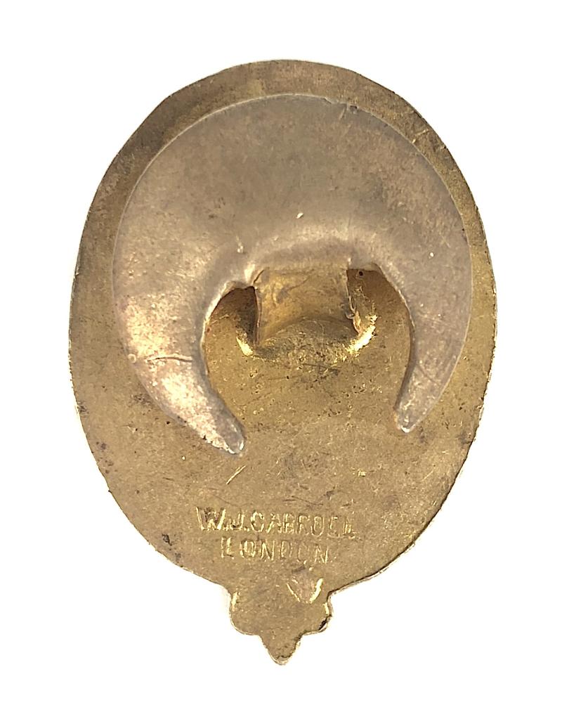 A good original First World War period 'National Volunteer Reserve badge'; gilt brass blue enamel strap, the centre bearing red enamel 'NVR 1914' logo on gilt seeded ground, the reverse impressed with maker's details 'W.J.Carroll London'. Very good condition, complete with buttonhole fitting, no damage to the enamel, gilt finish remains bright.