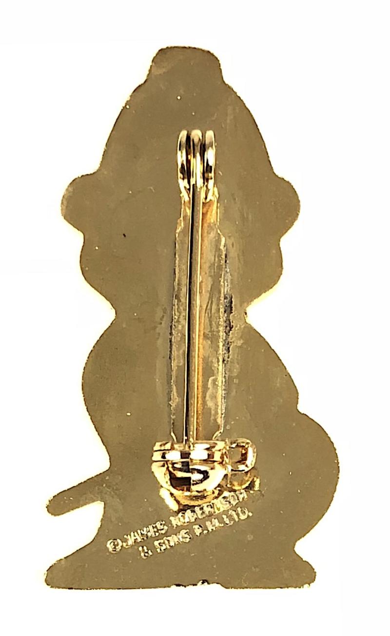 A good original circa 1980's 'Robertson's marmalades and Jam Golly Fireman promotional badge', this example with long hose nozzle, the reverse impressed with maker's details '©James Robertson & Sons P.M. Ltd.'. Very good condition, complete with original pin fittings, safety roller catch in good working order, no damage to the painted enamel finish.