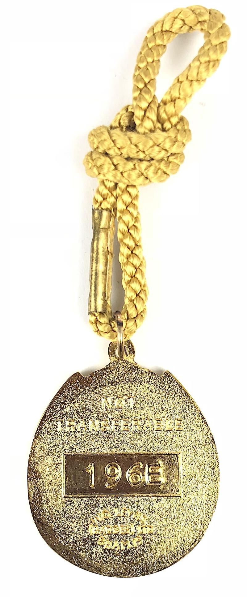 A good original 'Newbury The Racecourse 1905 - 2005 gentleman's membership Centenary badge' in the form of a blue and white enamel horse hoof inscribed to the centre '100 YEARS JUMP'; the reverse impressed with maker's details 'W.O.Lewis (Badges) Ltd B'Ham 19', official issue number '195 E' and 'Not Transferable'. Very good clean condition, complete with original cord.