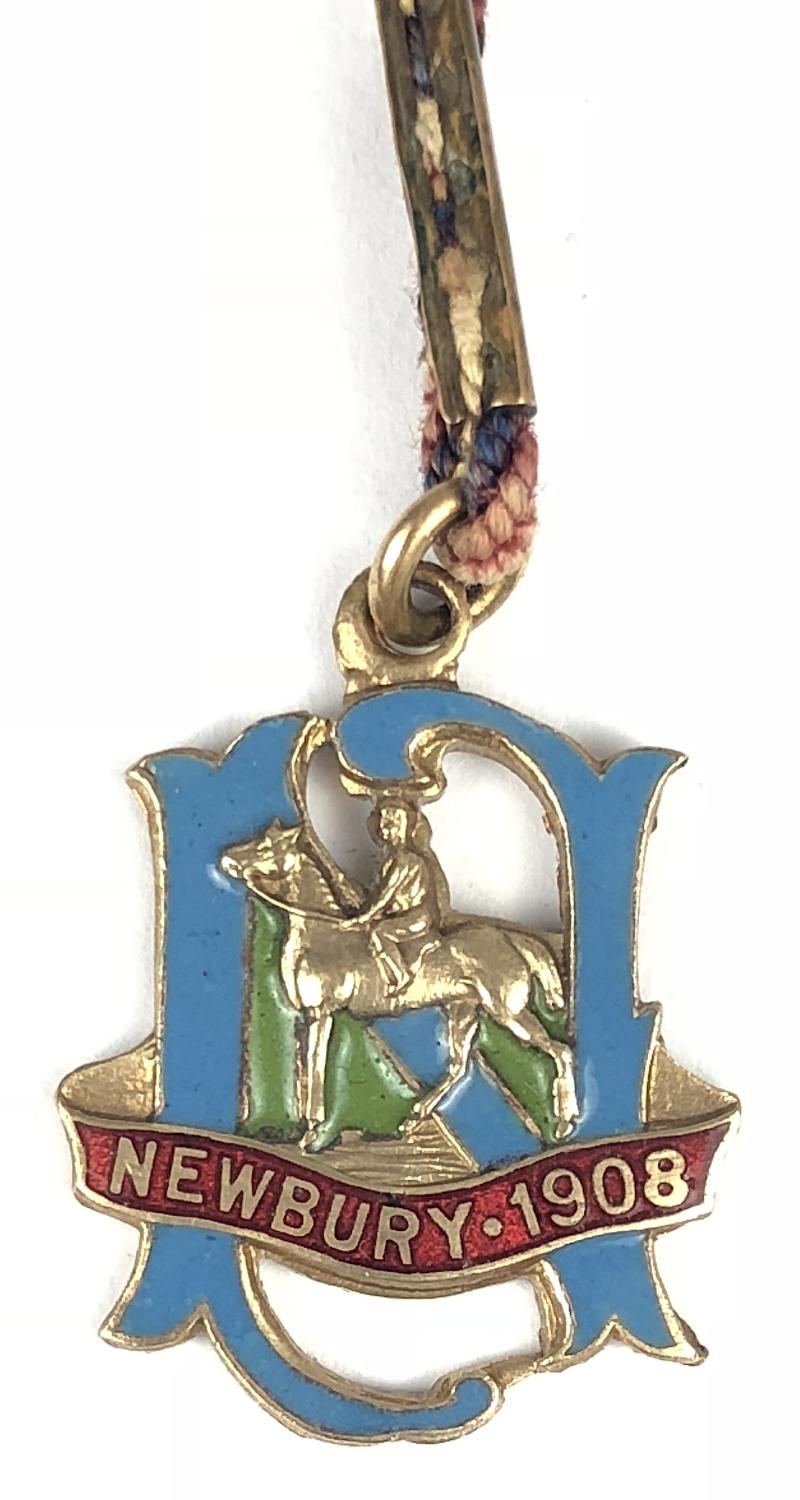 A rare original '1908 Newbury Racecourse horse racing club gentleman's membership badge', gilt and enamel example with official low issue number '133', the reverse impressed with maker's details 'Bowman Limited 68 & 70 Goswell Rd London'. Very good condition, enamel almost perfect and complete with original cord.