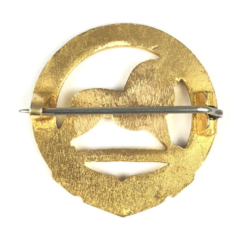 A scarce unusual 'British Empire Exhibition Wembley souvenir enamel pin badge' gilt brass example depicting the official 'Wembley Lion' symbol within a voided red enamel horseshoe title surround, joined at the base with white enamel 'Wembley 1924. Very good condition, complete with original pin fittings, no damage to the enamel, gilt finish remains bright, an excellent example.