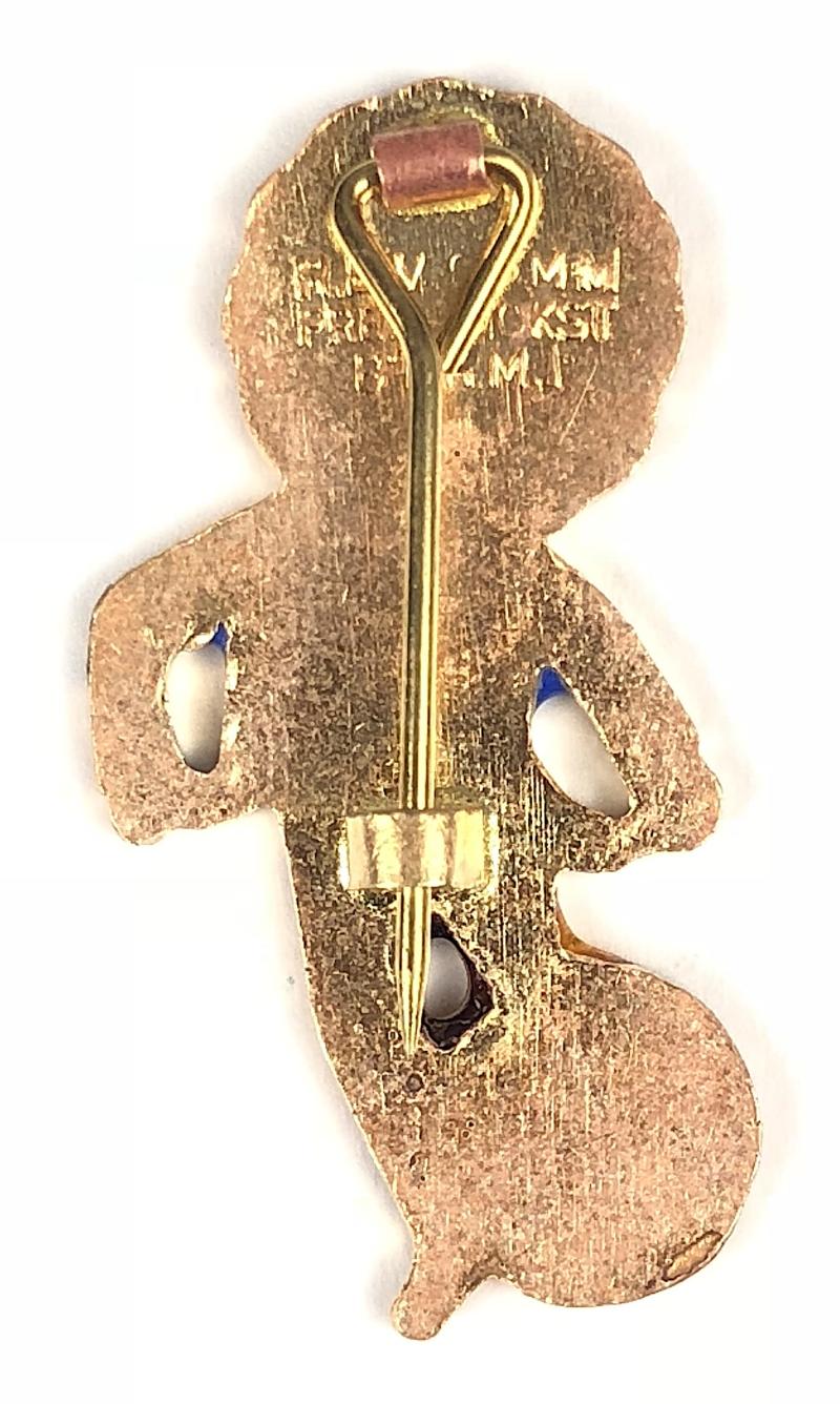 A good original circa 1970 vintage period 'Robertson's Golly footballer promotional pin badge', the reverse impressed with maker's details 'R.E.V. Gomm Frederick St B'ham I'. Very good condition, complete with original pin fittings, no stress marks or damage to the enamel, gilt finish remains bright.