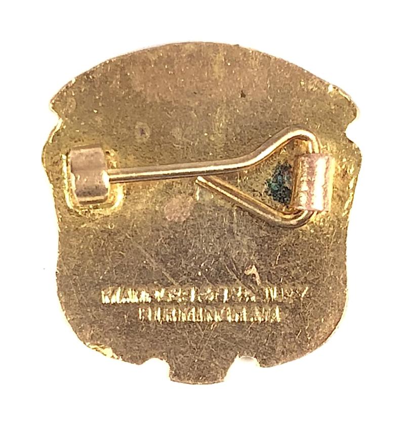 A scarce original circa 1950's 'Maddiesons Littlestone holday camp badge' in the form of a shield, highly enamelled, depicting the sun, sea and a bird in flght, the reverse impressed with maker's details 'Marples & Beasley Birmingham'. Excellent condition, complete with original pin fittings, enamel perfect, gilt finish remains bright.