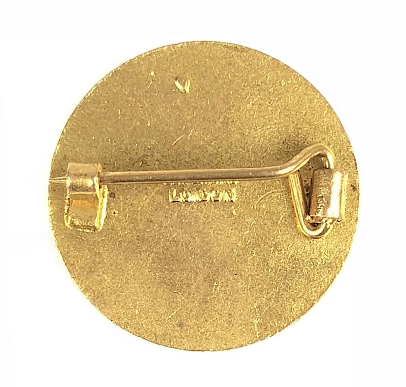 A good original circa 1960's period 'Seaton Valley Holiday Village pin badge', dark blue enamel title circlet large embossed gilt bell to centre on light blue enamel ground, the reverse impressed with maker's details 'J.R.GAUNT LONDON'. Very good mint condition, complete with original pin fittings, no damage to the enamel.