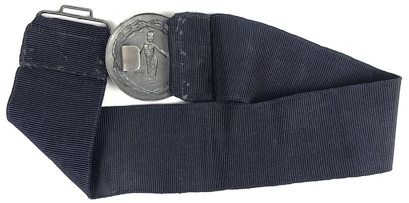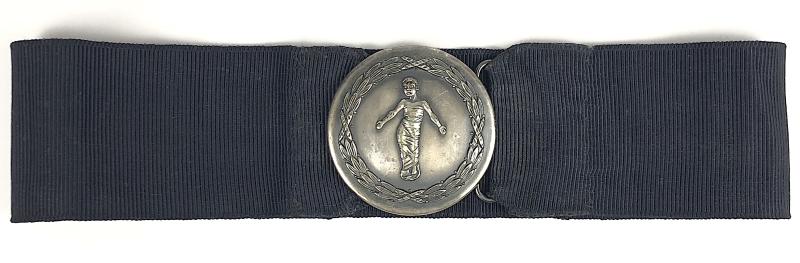 A scarce original 'Westminster Children's Hospital nurse's buckle', large circular silver plated die-stamped example, the centre depicting an infant in swaddling clothes within a laurel wreath. Very good used condition, complete with all fittings and petersham belt.